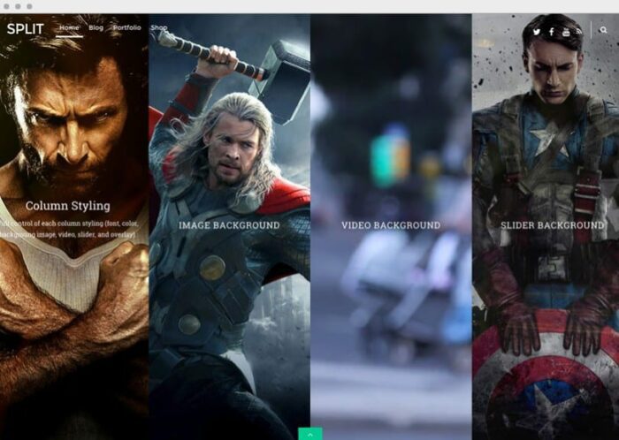 Сплит является полностью адаптивной для всех устройств WordPress темой, которая построена с функцией разделения прокрутки позволяет создавать прохладный эффект расщепления из одной строки в следующую. Мы создали эту функцию, чтобы позволить вам отображать любой контент (в полную ширину видео, изображение, текст) на любой строке вашего сайта, используя этот визуально привлекательный эффект. Мы также включили пару макетов постов, нет боковой панели (половина страницы) и боковой панели. Эти макеты позволяют изменять способ отображения портфолио или страниц блога. В дополнение к этому, мы упаковали эту тему с 9 по-разному цветными скинами, 8 образцов макетов страниц, верхний и нижний колонтитулы видимости вариантов, бесконечная прокрутка, и макета мозайки. Посетите демо, чтобы увидеть, что вы можете построить с Split!